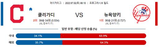 7월 2일 08:10 MLB 클리블랜드 : 뉴욕 양키스