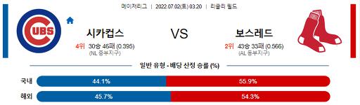 7월 2일 03:20 MLB C.컵스 : 보스턴