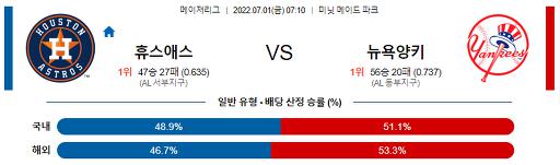 7월 1일 07:10 MLB 휴스턴 : 뉴욕양키스