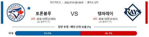 7월 1일 08:07 MLB 토론토 : 탬파베이