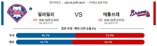6월 30일 08:05 MLB 필라델피아 : 애틀랜타