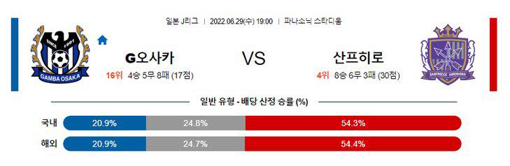【J리그】 6월29일 감바오사카 vs 산프레체