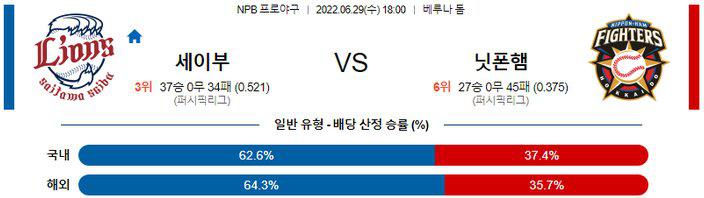 열람중 [NPB] 6월 29일 세이부 vs 니혼햄 2022.06.29 525