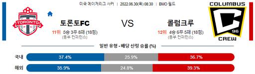 미국 MLS 6월 30일 08:30 토론토 FC : 콜럼버스 크루◈토론토 (동부리그 11위 / 승승패승승)