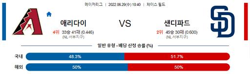 6월 29일 10:40 MLB 애리조나 : 샌디에이고