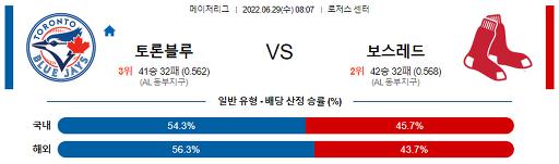 6월 29일 08:07 MLB 토론토 : 보스턴