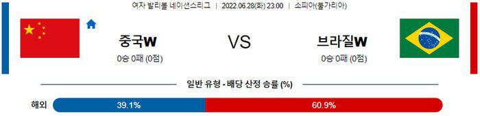 불가리아 중립구장 경기로 펼쳐지는 경기다. 최근 국제대회에서 중국을 상대로 고전했던 브라질 이였다는 것을 감안한다면 핸디캡 승부에서 욕심은 금물이 되지만 리시브 라인의 견고함에서 앞서는 브라질이 되는 만큼 빠른 세트 플레이로 중국의 불로킹을 분산시킬수 있을 것이다. 브라질 승리 가능성을 추천 한다.