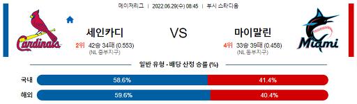 6월 29일 08:45 MLB 세인트루이스 : 마이애미
