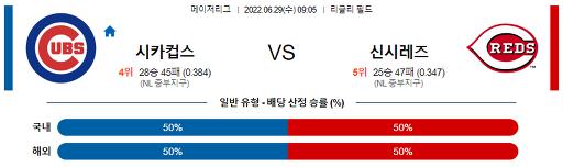 6월 29일 09:05 MLB 시카고컵스 : 신시내티