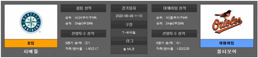 열람중 [MLB] 6월 28일 시애틀 : 볼티모어 2022.06.27 547