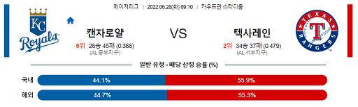 [MLB] 6월 28일 캔자스시티 : 텍사스