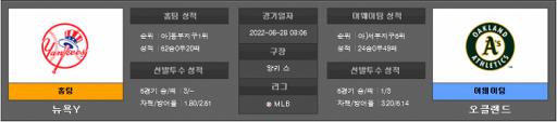 열람중 6월28일 MLB 뉴욕양키스 : 오클랜드 2022.06.27 669