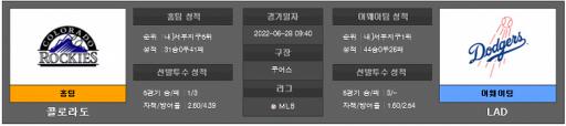 5177 [MLB] 6월 28일 콜로라도 : LA다저스 2022.06.27 581