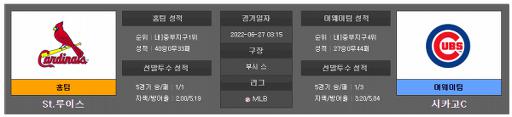 열람중 6월27일 MLB 세인트루이스 : 컵스 2022.06.26 599