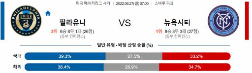 MLS 6월 27일 07:00 필라델피아 유니언 : 뉴욕 시티 FC