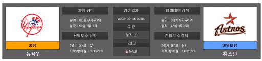 이 경기는 뉴욕양키스의 승리를 추천한다.