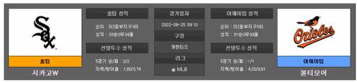 열람중 6월25일 MLB 화이트삭스 : 볼티모어 2022.06.24 501