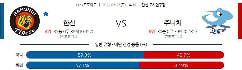 전일 경기 6-4, 승리로 시리즈 기선제압과 함께 3연패에서 벗어나는데 성공한 한신 타선에 대한 기대치가 높은 타이밍 이며 이토 마사시 투수는 지난시즌 주니치를 상대로 3경기 등판에서 모두 7이닝 이상 2실점 이하의 투구를 보여줬다. 한신 승리 가능성을 추천 한다.