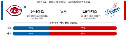 6월 24일 01:35 MLB 신시내티 : LA다저스