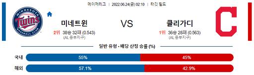 6월 24일 02:10 MLB 미네소타 : 클리블랜드