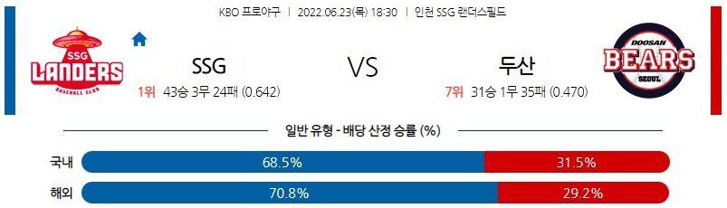 8경기 연속 7이닝 이상 QS 기록을 이어가고 있는 폰트 투수를 상대로 두산이 정면 승부를 피하는 박신지 선발 카드를 꺼낸 상황. 또한, 전일 경기 10회 연장전 승부에서 짜릿한 끝내기 승리를 기록한 SSG 타선의 기세도 이어질 것이다. SSG 승리 가능성을 추천 한다.