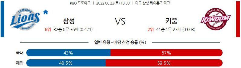 전일 경기 6-0 승리를 기록한 키움 타선에 대한 기대치가 높고 올시즌 삼성을 상대로 천적의 모습을 보여준 안우진 투수 였다. 키움 승리 가능성을 추천 한다.