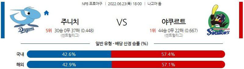 【NPB】 6월 23일 주니치 vs 야쿠르트