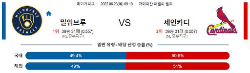 6월 23일 09:10 MLB 밀워키 : St.루이스
