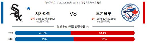 6월 23일 03:10 MLB C.화이트삭스 : 토론토