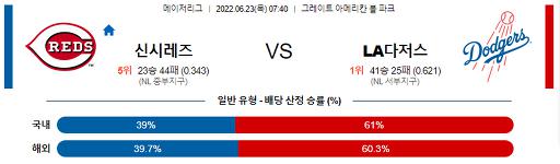 6월 23일 07:40 MLB 신시내티 : LA다저스
