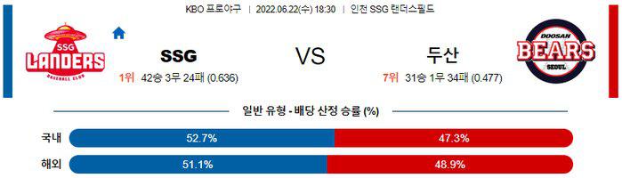 전일 경기에서 6회에 9득점을 기록하는 타격쇼를 선보이며 16-2, 완승을 기록한 두산이 선발 싸움에서 크게 밀리지 않지만 오원석 투수가 5~6이닝을 책임지고 공격적인 불펜의 운영을 통해서 지키는 야구의 힘을 보여줄 것으로 예상되는 SSG의 반격 가능성에 베팅 포커스를 맞춰야 하는 경기다. SSG 승리 가능성을 추천 한다.