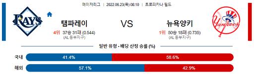 6월 23일 08:10 MLB 탬파베이 : 뉴욕 양키스