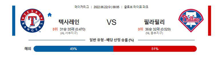 【MLB】 6월 22일 텍사스 vs 필라델피아