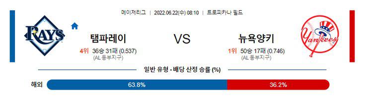 【MLB】 6월 22일 탬파베이 vs 뉴욕양키스