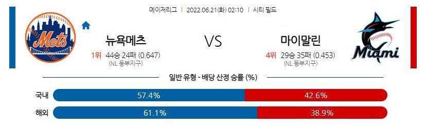 【MLB】 6월 21일 뉴욕메츠 vs 마이애미