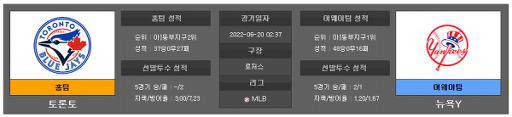 열람중 6월20일 MLB 토론토 : 양키스 2022.06.19 527