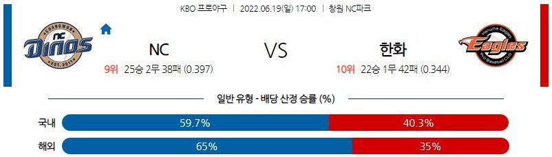 8화 동점을 허용한 이후 9회 끝내기 홈런을 맞고서 2-3, 패배로 7연패 늪에 빠진 한화의 어려움이 이어질 것으로 예상되는 일요일 경기다. 또한, 6연속 QS를 기록하고 있는 신민혁 투수가 선발 싸움에서 우위에 있다. NC 승리 가능성을 추천 한다.