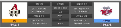 열람중 6월20일 MLB 애리조나 : 미네소타 2022.06.19 588