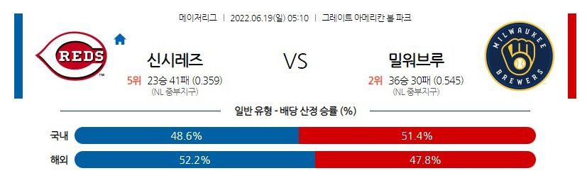 【MLB】 6월 19일 신시내티 vs 밀워키