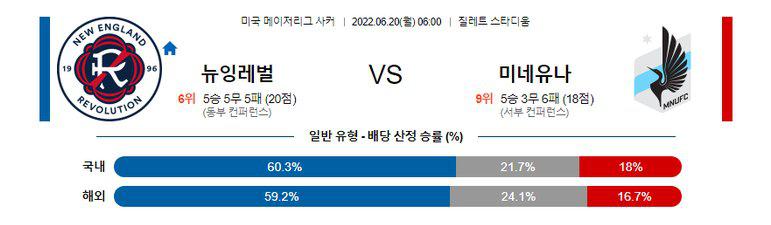 【MLS】 6월20일 뉴잉글랜드 vs 미네소타