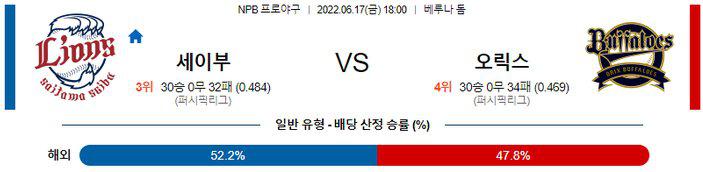 열람중 【NPB】 6월 17일 세이부 vs 오릭스 2022.06.17 576