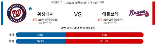 6월 16일 08:05 MLB 워싱턴 : 애틀랜타