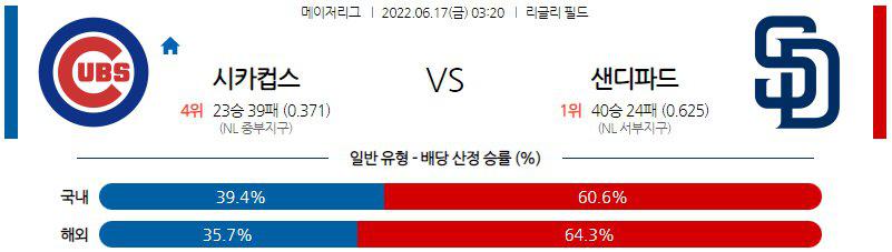 【MLB】 6월 17일 시카고 컵스 vs 샌디에이고
