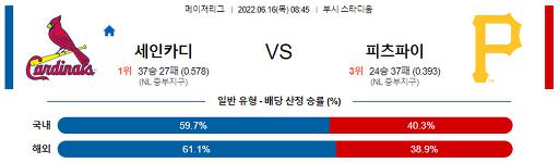6월 16일 08:45 MLB St.루이스 : 피츠버그