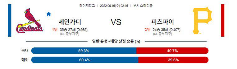 【MLB】 6월15일 세인트루이스 vs 피츠버그