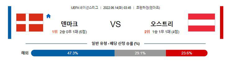 【UEFA네이션스리그】 6월 14일 덴마크 vs 오스트리아