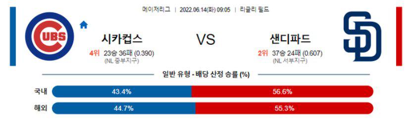 【MLB】 6월14일 시카고컵스 vs 샌디에이고