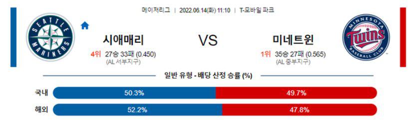 열람중 【MLB】 6월14일 시애틀 vs 미네소타 2022.06.13 481