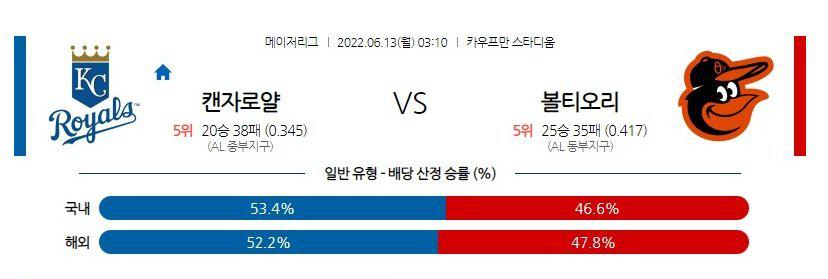 【MLB】 6월13일 캔자스시티 vs 볼티모어