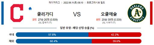 6월 11일 08:10 MLB 클리블랜드 : 오클랜드
